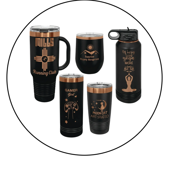 Our Powder-coated cups That engrave gold are the latest additions to our extensive drinkware menu.